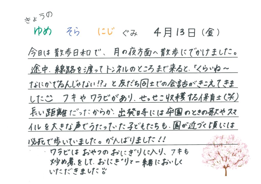 2018年4月13日 今日のゆめ・そら・にじ組