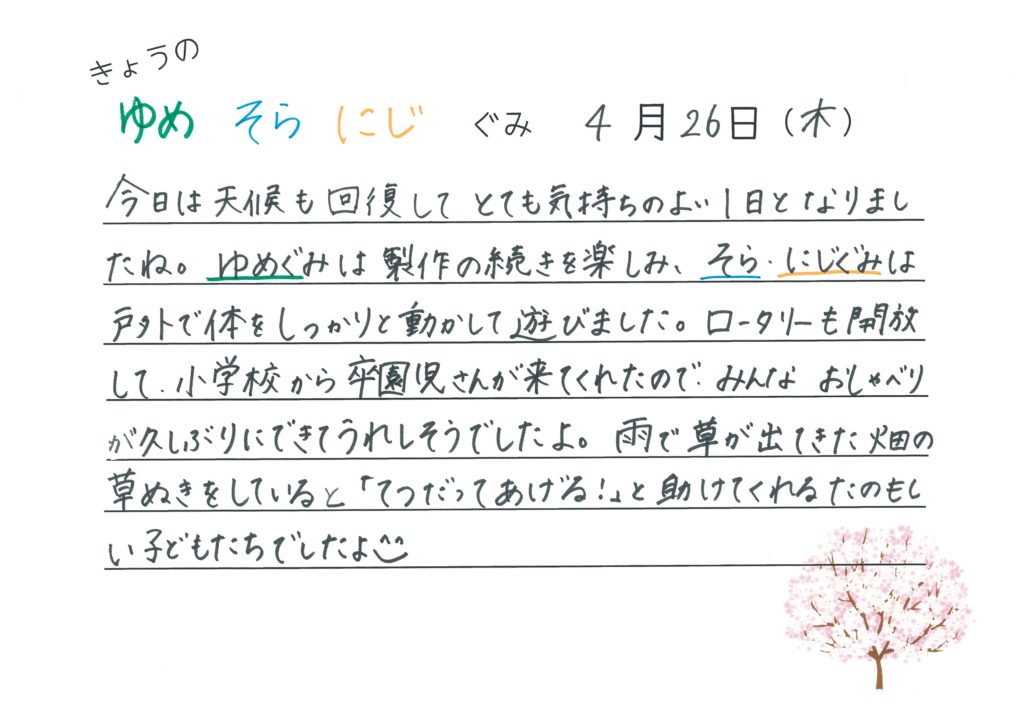2018年4月26日 今日のゆめ・そら・にじ組