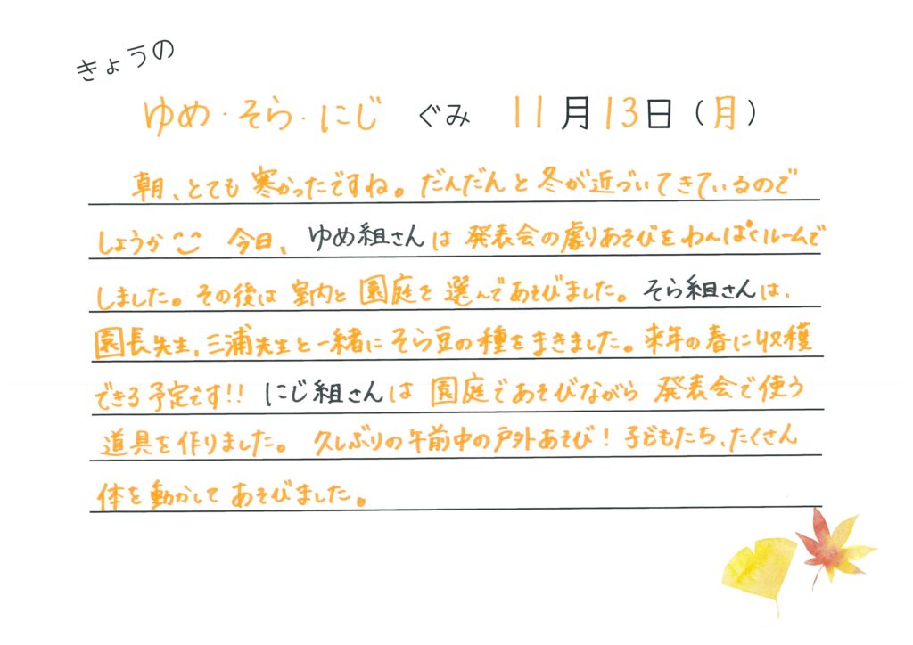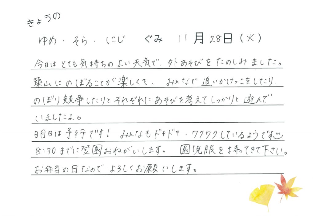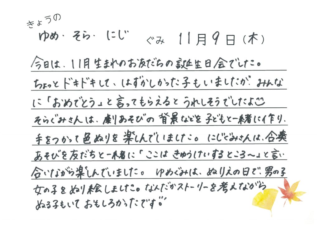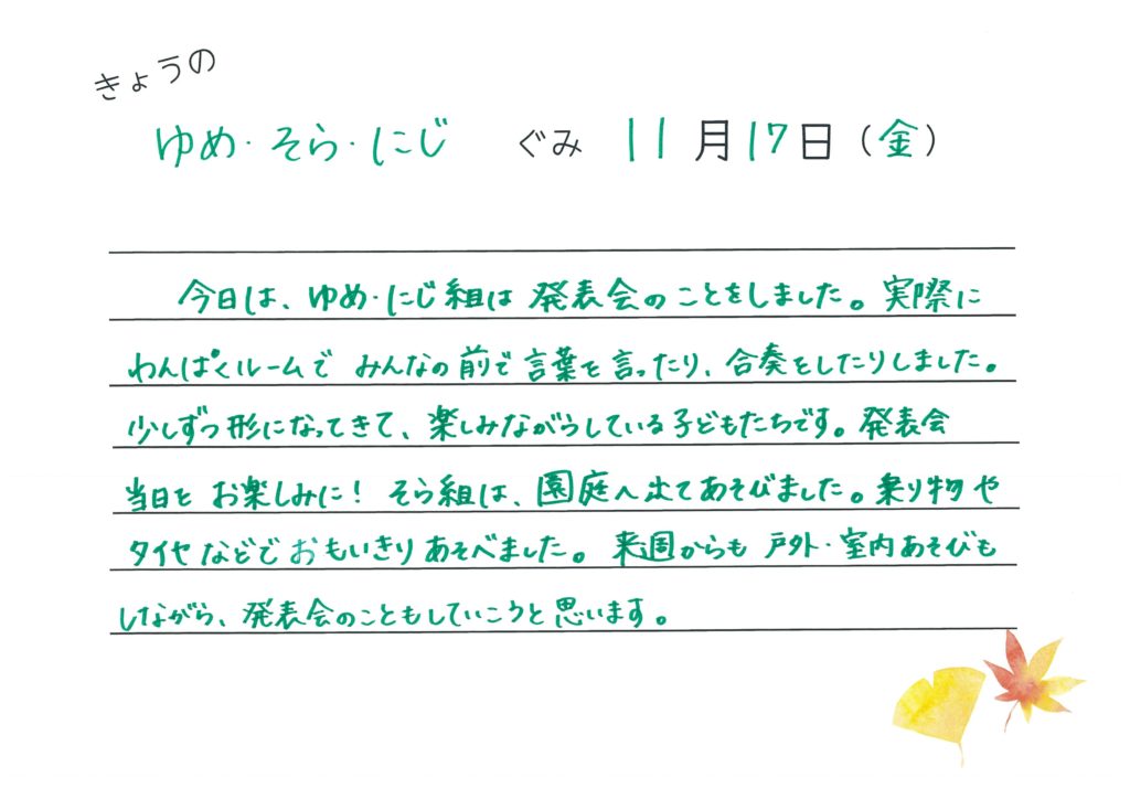2017年11月22日 今日のゆめ・そら・にじぐみ