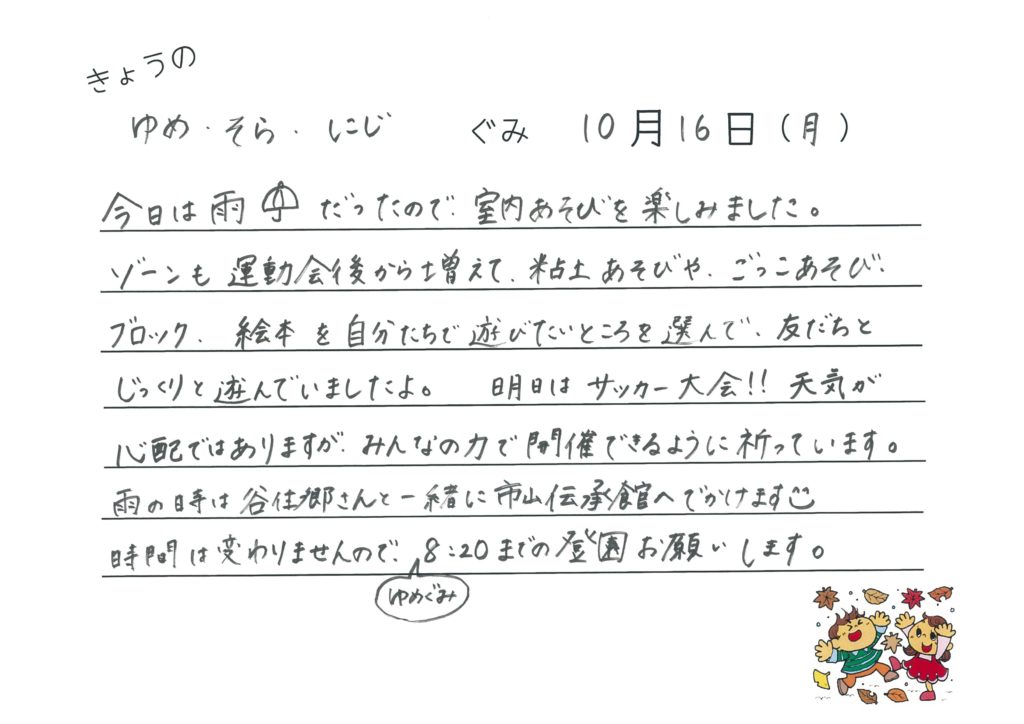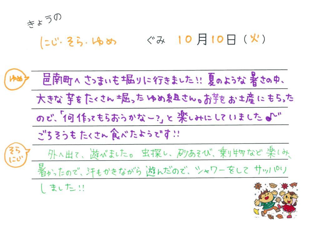 2017年10月16日 今日のゆめ・そら・にじ組