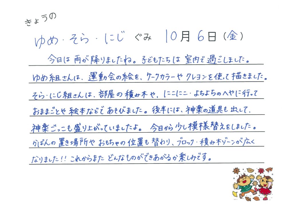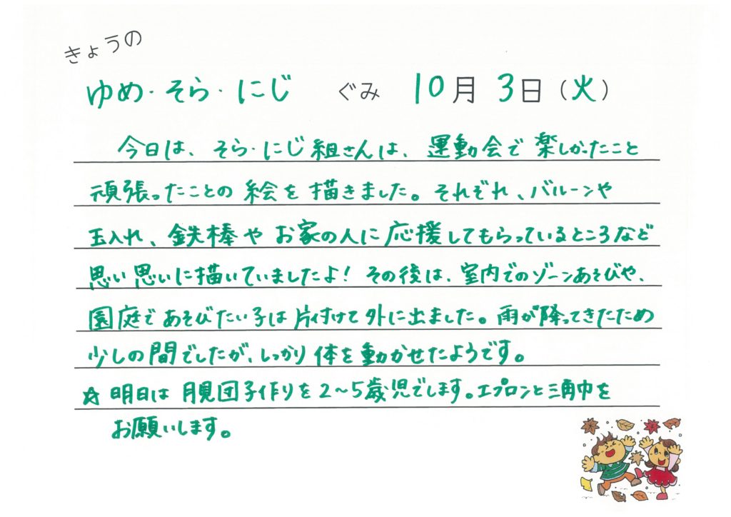 2017年10月3日 今日のゆめ・そら・にじ組