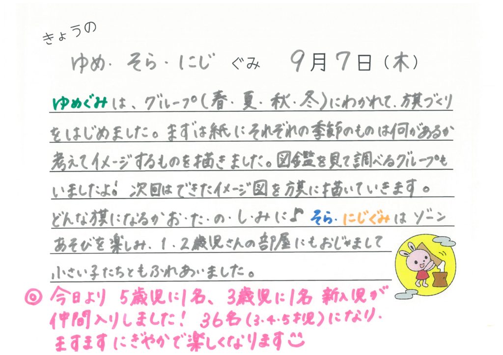 2017年9月8日 きょうのゆめ・そら・にじぐみ