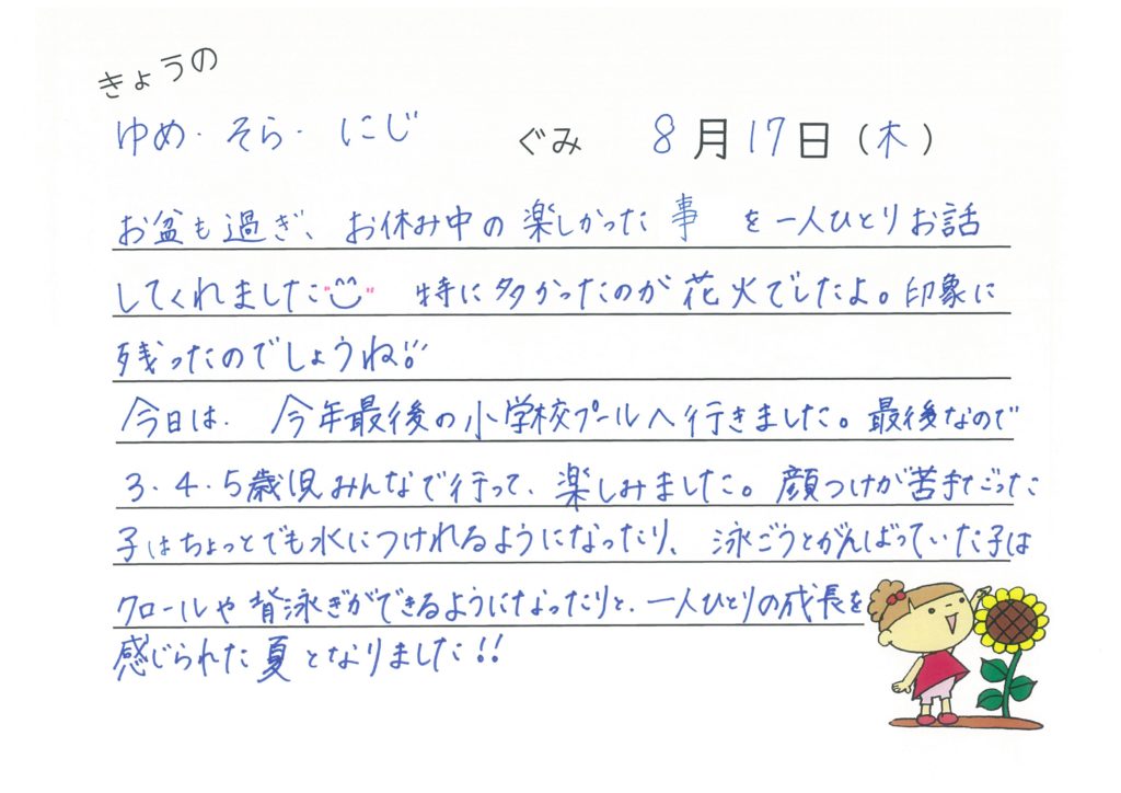 2017年8月17日 きょうのゆめ・そら・にじぐみ