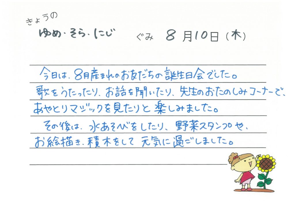 2017年8月9日 今日のゆめ・そら・にじ組
